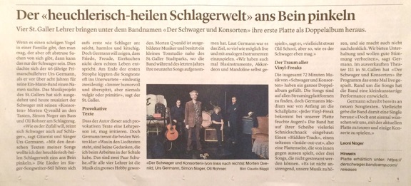 Der Schwager präsentiert eigene Songs mit deutschen Texten, humorvoll und selbstironisch. Ganz nach dem Motto: Je schöner die Melodie, desto dreckiger der Text.